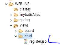 * - 게시판 등록 기능 컨트롤러 메소드 만들기 (crudRegister:post)