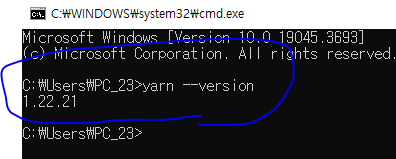 * 터미널을 열고 다음 명령어를 입력하여 yarn을 제대로 설치했는지 확인해 보자.
