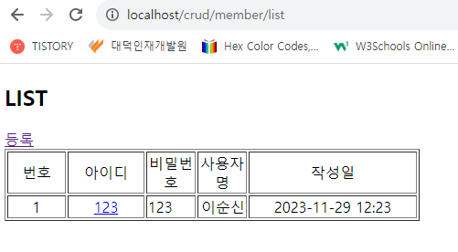 * - 게시판 등록 기능 컨트롤러 메소드 만들기 (crudRegister:post)