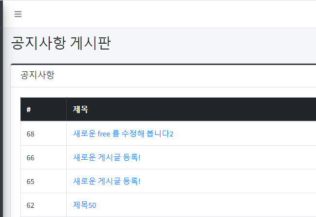 * 3. 공지사항 게시판(부트스트랩 디자인) CRUD 실습