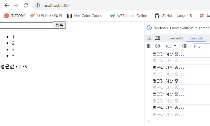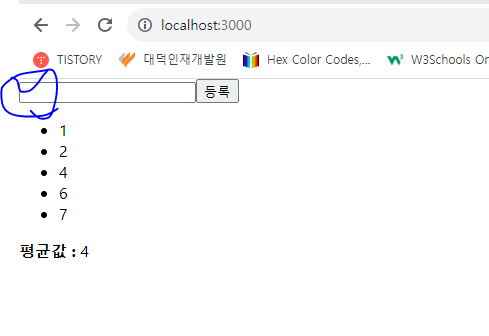 * 브라우저에서 숫자들을 등록해 보자. 평균 값이 잘 나타나는가?