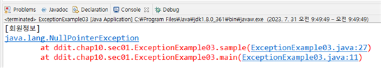exceptionMethod01(); // at ddit.chap10.sec01.ExceptionExample02.main(ExceptionExample02.java:7)