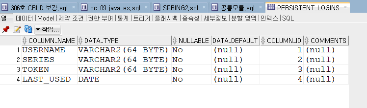 - 데이터 소스를 지정하고 테이블을 이용해서 기존 로그인 정보를 기록