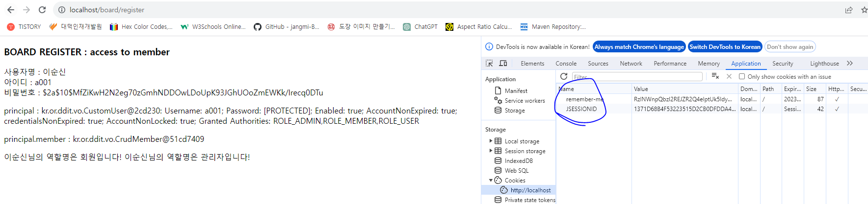* (시큐리티 인메모리)에 UserDetail 정보를 저장한다. 그리고 최종적으로 JSESSIONID가 유효한지를 검증 후