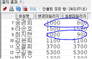 , MEM_MILEAGE AS "원본마일리지"
