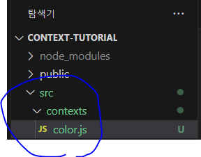 * 프로젝트를 생성한 후, 새로운 Context를 만들어 보자. src 디렉터리에 contexts 디렉터리를 만든 뒤 그 안에 color.js라는 파일을 만든다.