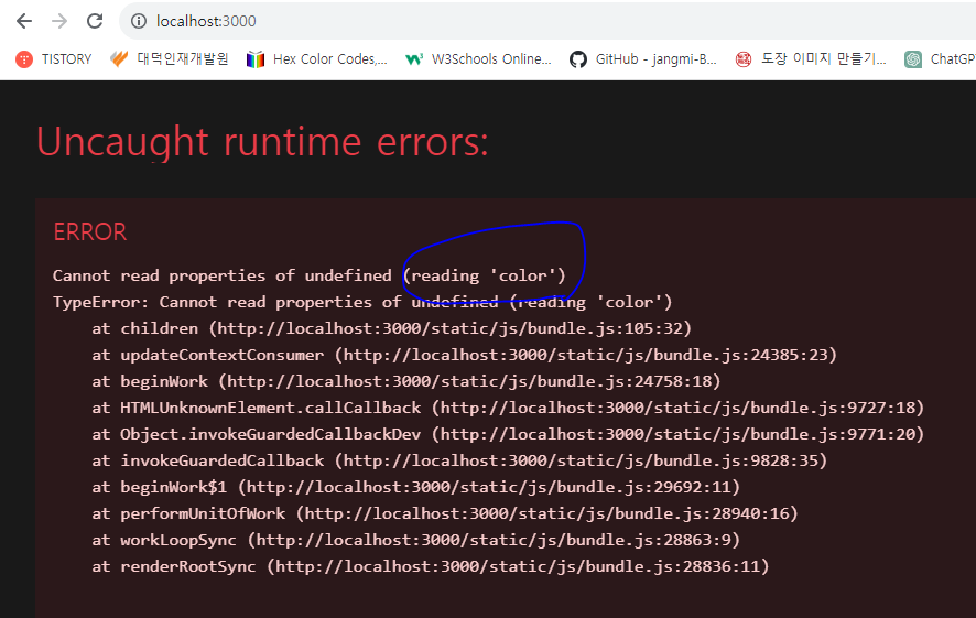 * 기존에 createContext 함수를 사용할 때는 파라미터로 Context의 기본값을 넣어 주었다. 이 기본값은 Provider를 사용하지 않았을 때만 사용된다. 만약 Provider는 사용했는데 value를 명시하지 않았다면, 이 기본값을 사용하지 않기 때문에 오류가 발생한다.