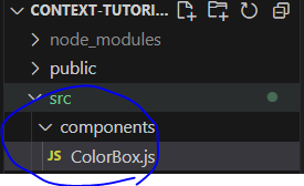 * src 디렉터리에 components 디렉터리를 만들고, 그 안에 ColorBox.js 파일을 생성하여 다음 코드를 입력해 보자.