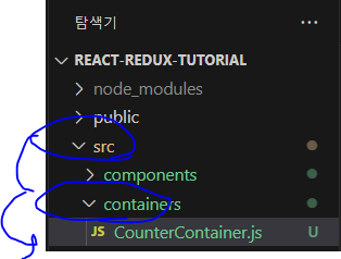 * src 디렉터리에 containers 디렉터리를 생성하고, 그 안에 CounterContainer 컴포넌트를 만들자.