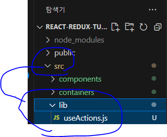 * src 디렉터리에 lib 디렉터리를 만들고, 그 안에 useActions.js 파일을 다음과 같이 작성해 보자.