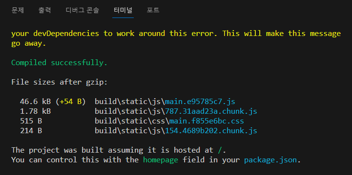 * 이제 yarn build 명령어로 프로젝트를 다시 빌드해 보자.