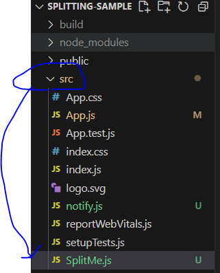 * 컴포넌트 코드를 스플리팅하기에 앞서 일반 자바스크립트 함수를 스플리팅해 보자. src 디렉터리에 notify.js 파일을 생성하여 다음 함수를 작성해 보자.