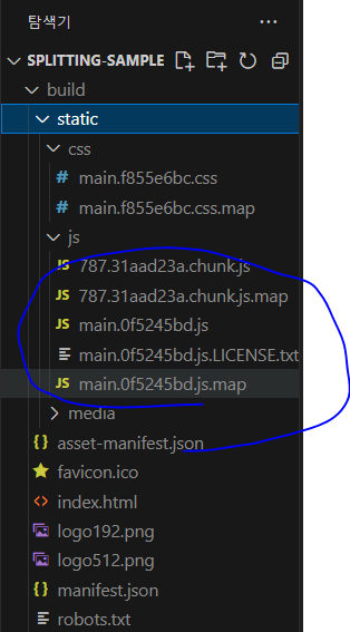 * 프로젝트 디렉터리 안에 있는 build/static 디렉터리를 열어 보자. 자바스크립트 파일 여러 개가 잘 만들어 졌는가?