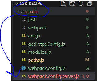 * 다음으로 웹팩 환경 설정 파일을 작성한다. config 디렉터리에 webpack.config.server.js 파일을 생성해 주자.