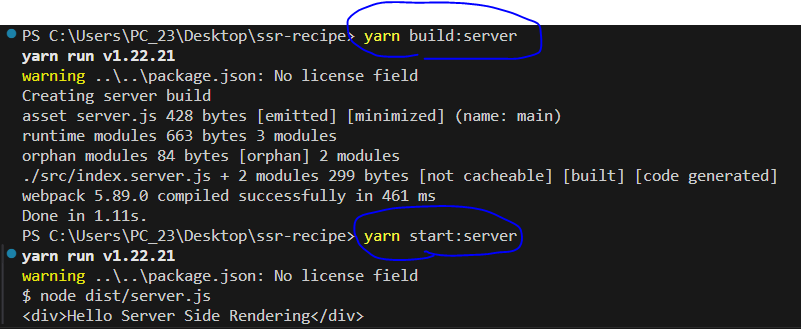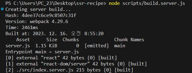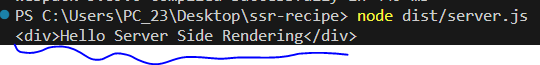 * 스크립트를 다 만들고 나서 짧아진 명령어로 다시 한 번 실행해 보자. 잘 작동한다. 이제 본격적으로 서버 사이드 렌더링을 구현할 준비가 되었다!