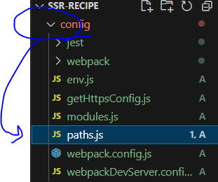 * 이 파일에는 ssrIndexJs와 ssrBuild 정보를 추가했다. ssrIndexJs는 불러올 파일의 경로이고, ssrBuild는 웹팩으로 처리한 뒤 결과물을 저장할 경로이다.
