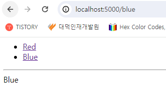 * /red 페이지와 /blue 페이지에 들어갔을 때도 알맞은 컴포넌트가 잘 보인다.
