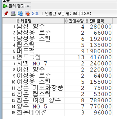 FROM (SELECT PROD_ID AS 상품코드