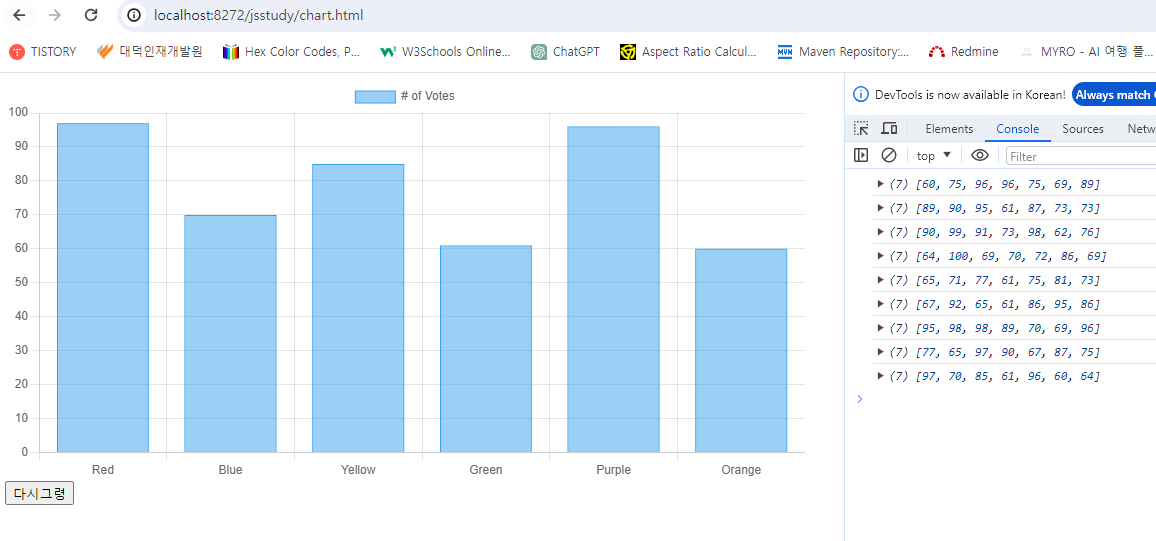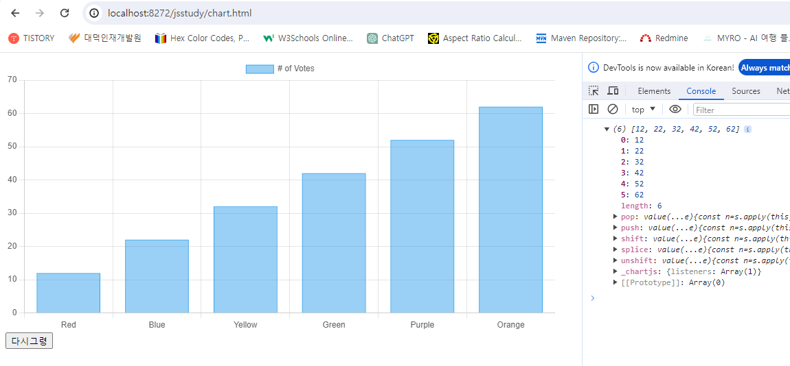 // chart.js에서 가장 중요한 메소드 update() => 다시 그려랑(rendering)