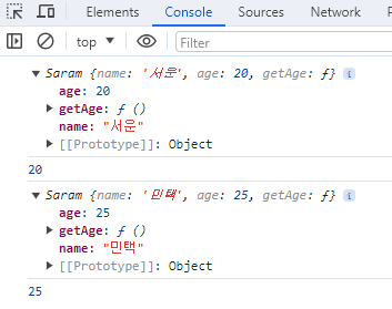 Saram.prototype.getAge = function(){ // 요걸 받아들이면 이야기가 많이 쉬워짐