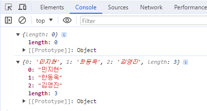 myList.add("민지현").add("한동욱").add("김영진").add("홍창용천재").add("자바스크립트");
