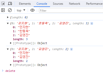this.length--; // 1개 지웠으므로, 1개 감소