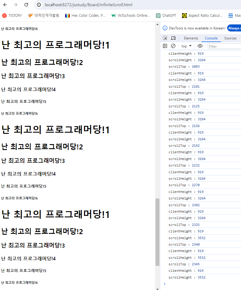 <h1>DIV에 무한스크롤 걸기</h1>