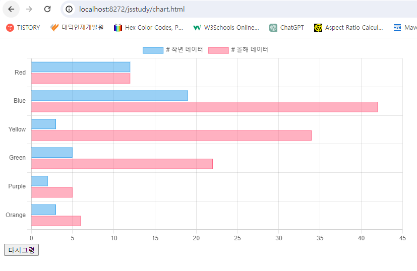 indexAxis:'y', // 요것만 넣으면 수평차트가 됨!