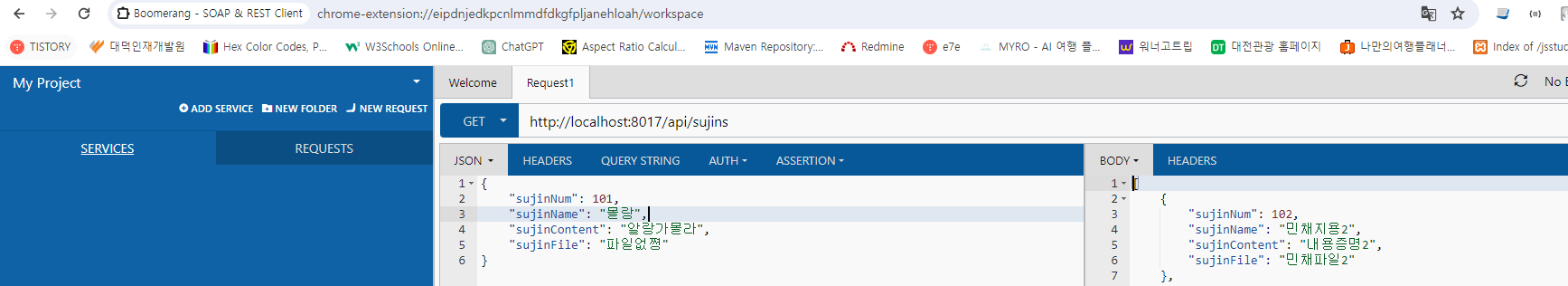// 백엔드 Restful SujinController에 대응하는 함수들