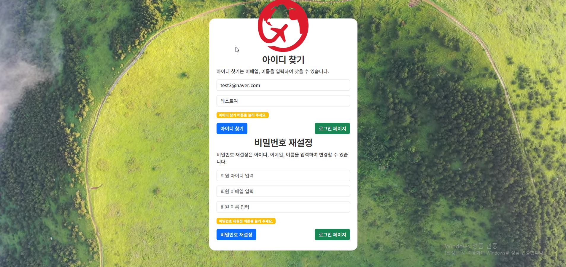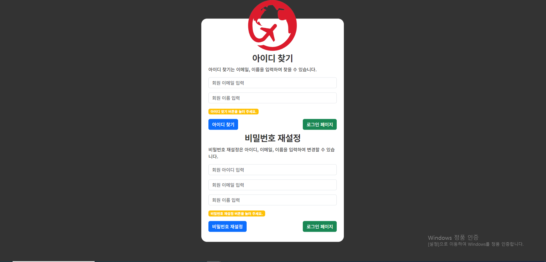 (10) 아이디/비밀번호 재설정 페이지 > 화면 설명 본문