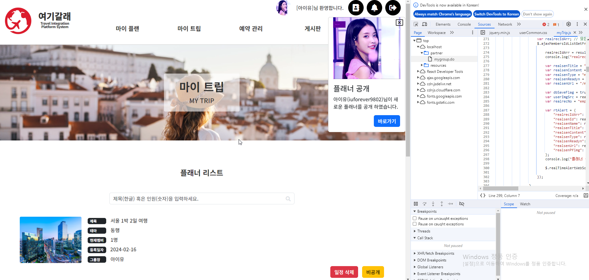 | (18) 마이 트립 > 만남의 광장 페이지 > 화면 설명 (0) | 2024.02.16 |