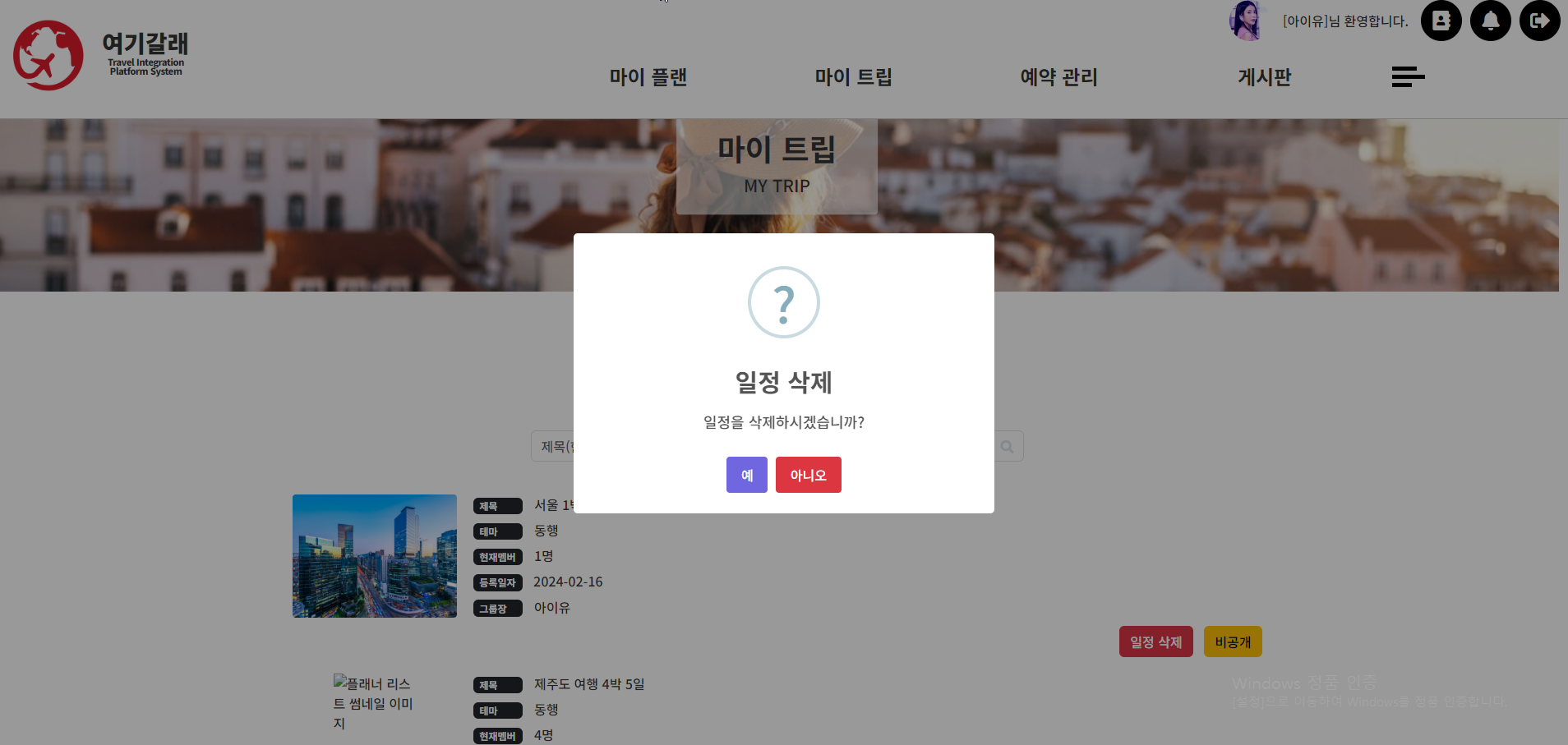 (16) 마이 트립 > 플래너 리스트 페이지 > 화면 설명 본문