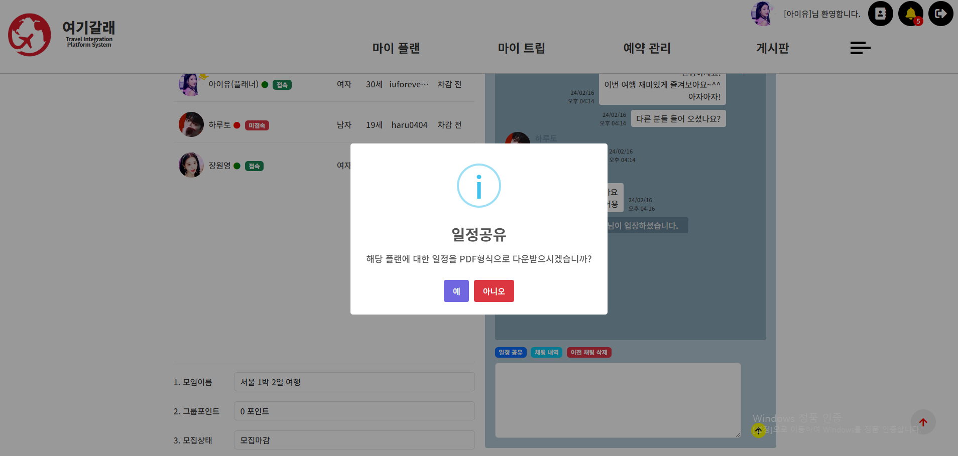 (18) 마이 트립 > 만남의 광장 페이지 > 화면 설명 본문