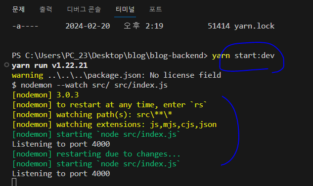 $ yarn start:dev # 재시작이 필요할 때