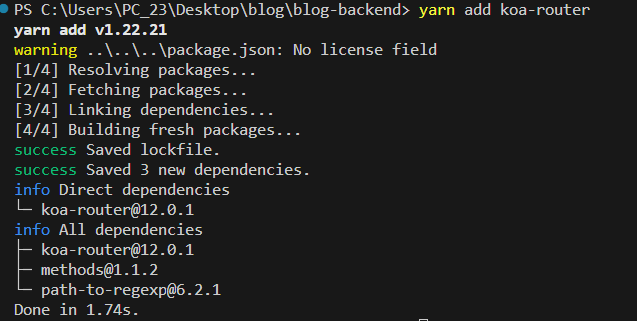 $ yarn add koa-router