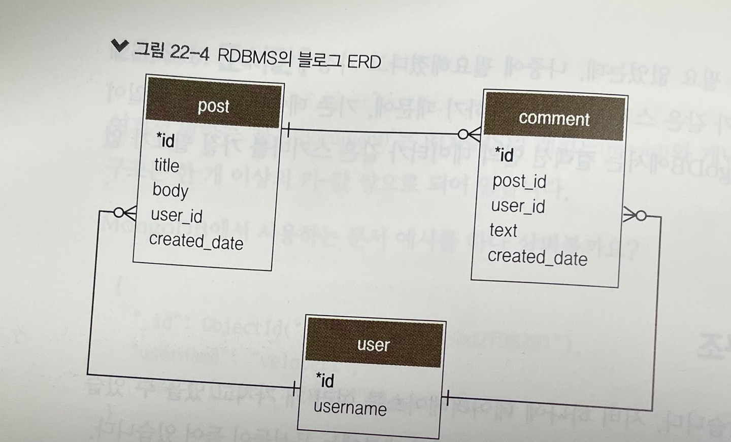 * RDBMS에서 데이터베이스를 설계한다면 그 구조는 다음과 유사하다.