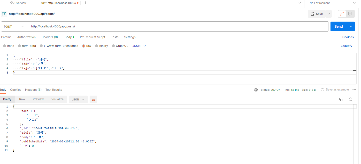 * 코드를 다 작성했다면 Postman으로 다음 정보를 요청해 보자.