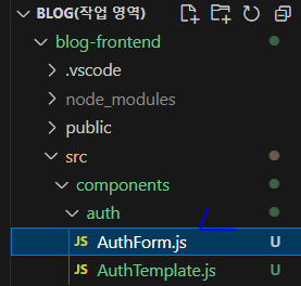 * 회원가입과 로그인 기능을 구현하기 위해 만들어야 할 프레젠테이셔널 컴포넌트는 두 개이다. 먼저 다음 파일들을 생성해 주자. 각 컴포넌트의 역할이 무엇인지는 주석에 간략하게 적혀 앴으니 주석도 꼼꼼히 읽어 보자.