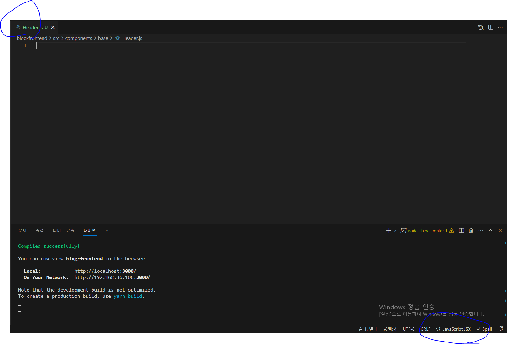 * 어떤 언어의 Snippet을 설정할 것인지 물어보면 javascriptreact를 입력하자.