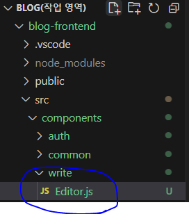 * 다음으로 components/write 디렉터리에 Editor 컴포넌트를 만들자. 이 컴포넌트에서는 제목과 내용을 입력할 수 있다. 제목은 input을 사용하고, 내용은 Quill 에디터를 사용해 볼 것이다.