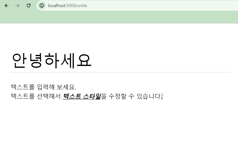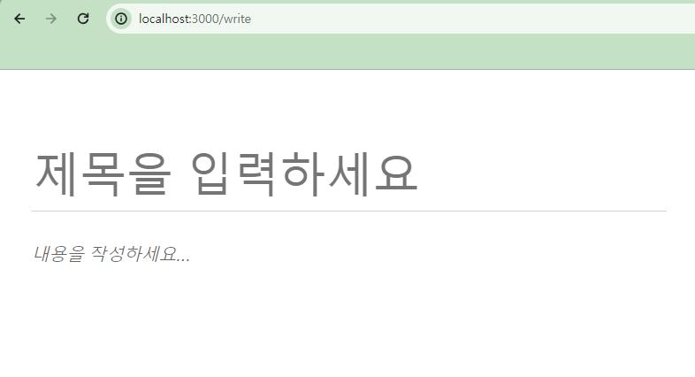 * Editor 컴포넌트를 WritePage에 렌더링하고 http://localhost:3000/write 주소를 입력하여 들어가 보자.