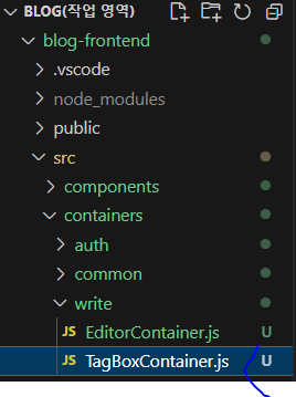 * 이제 Editor, TagBox, WriteActionButtons 컴포넌트 각각에 대해 컨테이너 컴포넌트를 만들어 줄 것이다. 현재 상황을 보면, 구현해야 할 기능이 그렇게 많지 않고 로직도 간단하기 때문에 컨테이너 컴포넌트를 하나만 만들고 그 안에서 글 작성에 관련한 모든 컴포넌트의 상태 관리를 해 주어도 괜찮을 것 같다. 하지만 이러한 방식은 자칫하면 코드가 방대해져 나중에 유지 보수가 어려워질 수 있기 때문에 각 컴포넌트의 역할에 따라 컨테이너 컴포넌트를 따로 만드는 것을 권장한다.