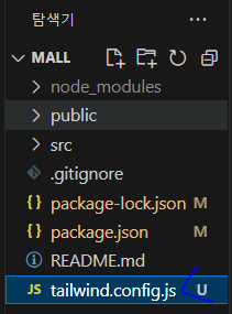* 명령어가 실행된 후에는 프로젝트 내에서 tailwind.config.js 파일이 생성된 것을 볼 수 있다.
