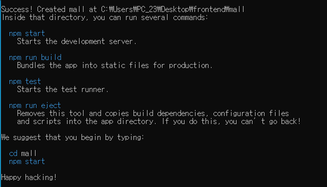 $ npx create-react-app mall
