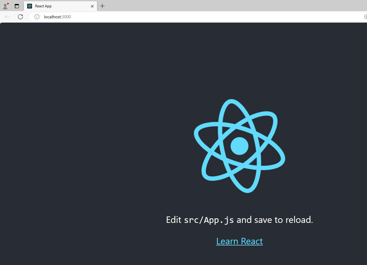 * 프로젝트가 실행되면 브라우저에서 http://localhost:3000이 자동으로 실행되는 것을 확인할 수 있다.