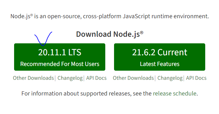 * 리액트 개발을 위해서는 node.js를 설치해야 한다. 아래의 주소에서 다운로드 할 수 있으며 LTS 버전이 오랫동안 지원되므로 이를 설치한다.
