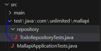* Test 폴더에는 repository 패키지를 생성하고 TodoRepositoryTests.java 파일을 추가한다.