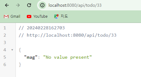 * 예를 들어 존재하지 않는 번호의 Todo를 조회하면 NoSuchElementException 에러가 발생한다.