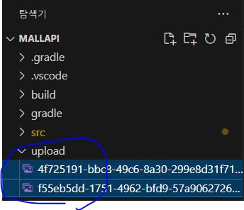 * 예제에서는 프로젝트의 실행 폴더에 upload 폴더를 생성해서 파일들을 보관하도록 한다.