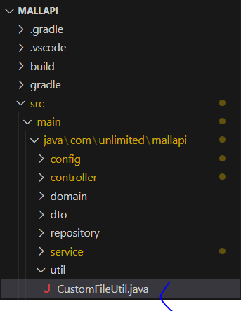 * ProductController의 개발 전 단계로 실제 파일을 저장하는 역할은 util 패키지를 구성하고 CustomFileUtil 클래스를 추가해서 처리한다.